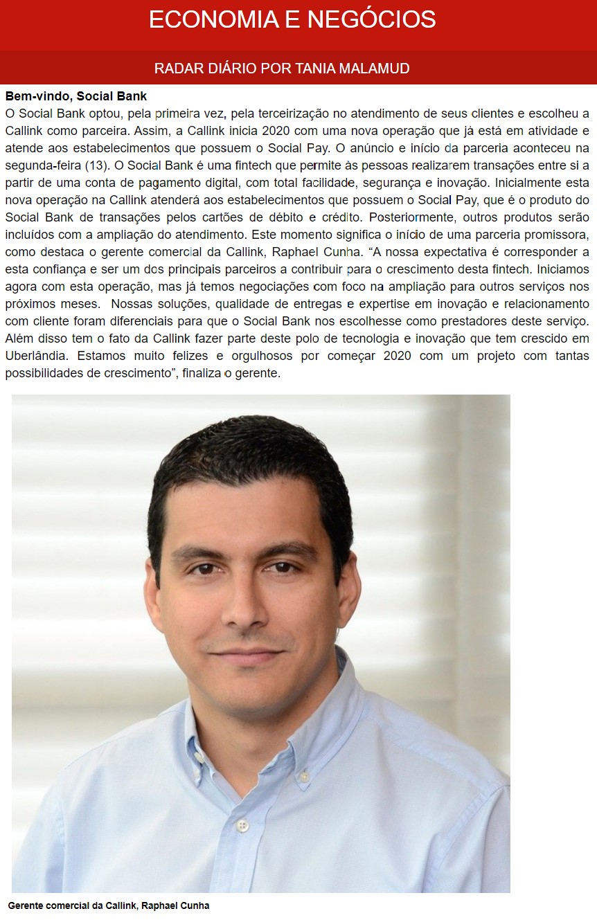 ONLINE - COLUNA RADAR DIÁRIO - Bem-vindo, Social Bank - 19/01