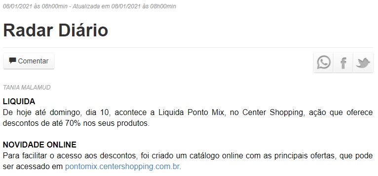 ONLINE - Coluna Radar Diário - Liquida Ponto Mix - 08/01