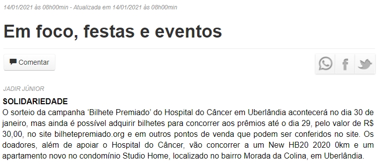 ONLINE - Coluna Social - Bilhete Premiado - 14/01