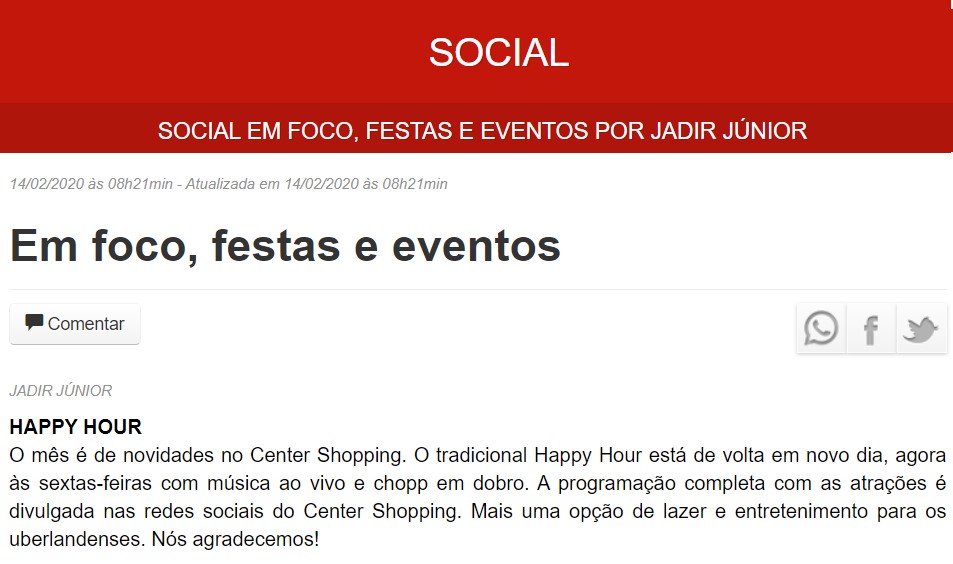 ONLINE - COLUNA SOCIAL - HAPPY HOUR - 14/02