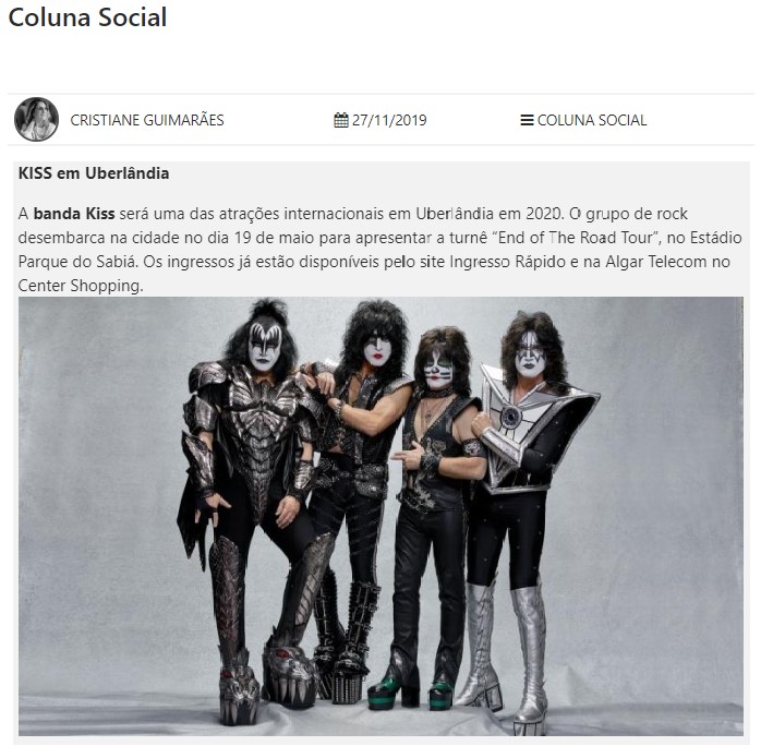 ONLINE - Coluna Social - KISS em Uberlândia - PONTO DE VENDAS (27/11)