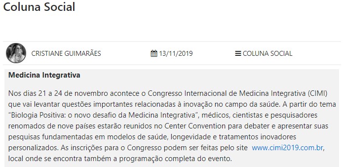 ONLINE - Coluna Social - Medicina Integrativa (13/11)