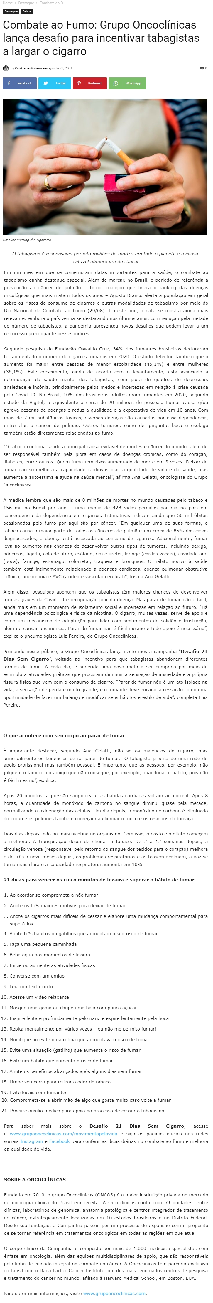 ONLINE-Combate ao Fumo: Grupo Oncoclínicas lança desafio para incentivar tabagistas a largar o cigarro-23.08