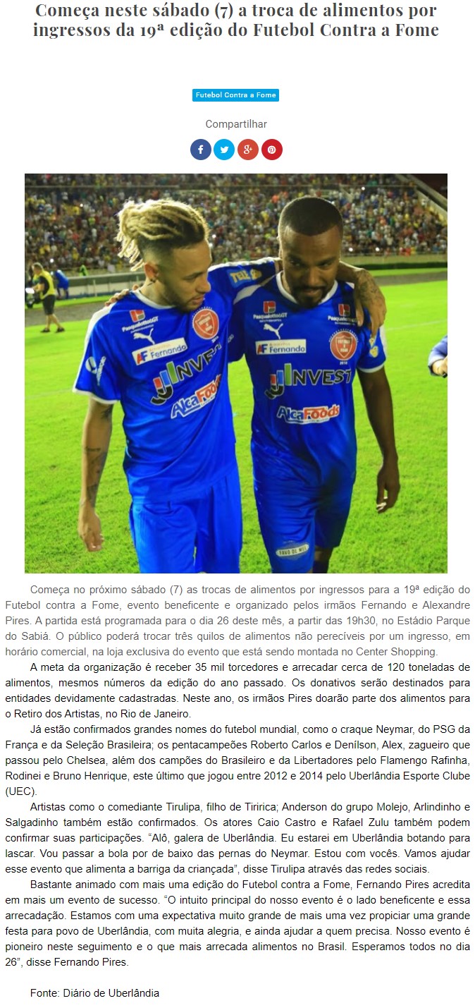 ONLINE - Começa neste sábado (7) a troca de alimentos por ingressos da 19ª edição do Futebol Contra a Fome (05/12)
