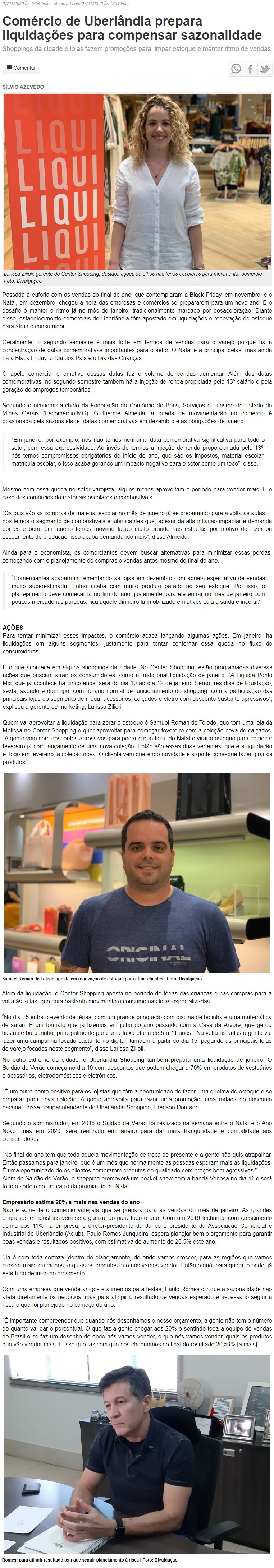 ONLINE - Comércio de Uberlândia prepara liquidações para compensar sazonalidade - 07/01