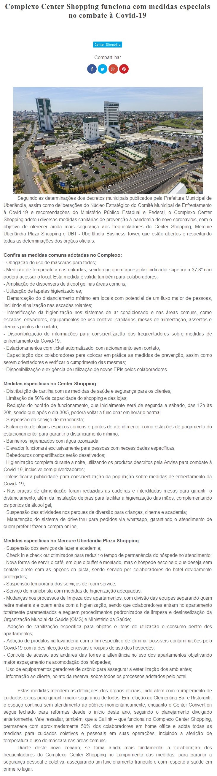 ONLINE - Complexo Center Shopping funciona com medidas especiais no combate à Covid-19 - 27/05