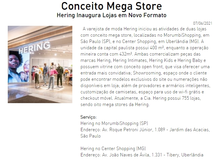 ONLINE - Conceito Mega Store - Nota sobre a abertura da loja Hering - 07.06