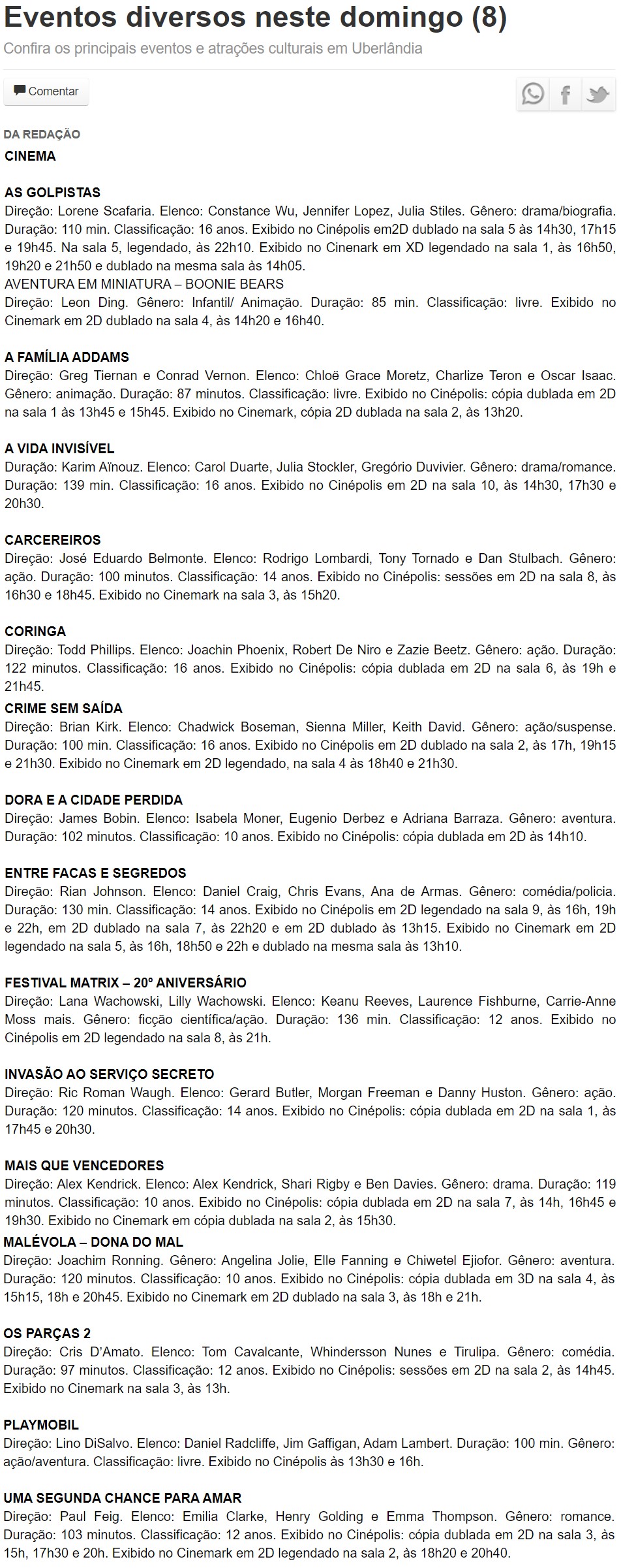 ONLINE - Confira a agenda cultural deste sábado (8) - CINEMA (08/12)