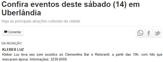 ONLINE - Confira eventos deste sábado (14) em Uberlândia (14/12)
