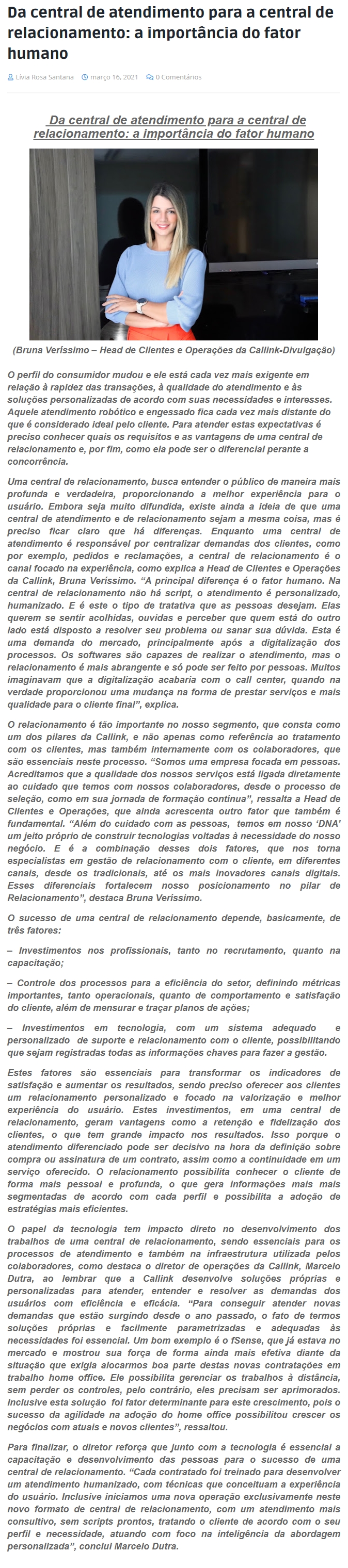 ONLINE - Da central de atendimento para a central de relacionamento: a importāncia do fator humano - 16.03