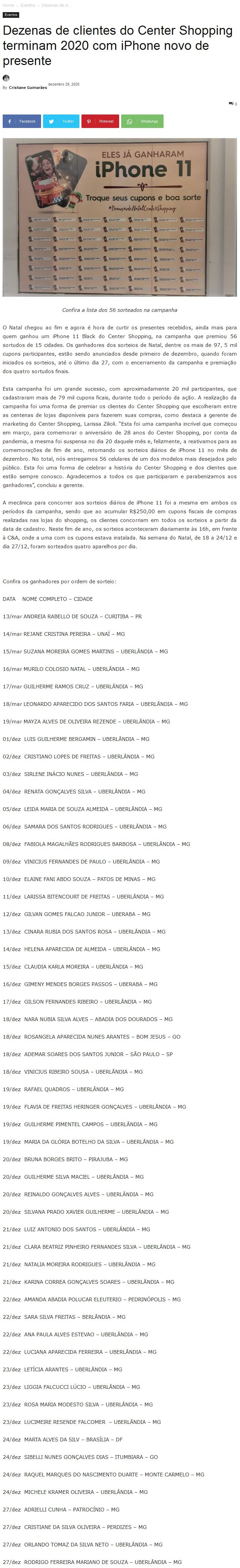 ONLINE - Dezenas de clientes do Center Shopping terminam 2020 com iPhone novo de presente - 29/12