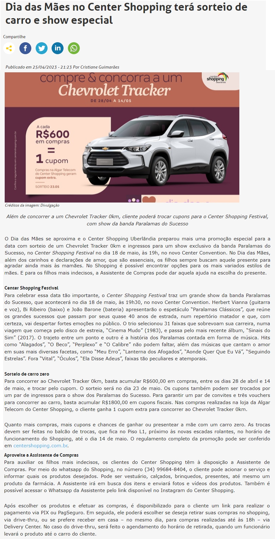 ONLINE-Dia das Mães no Center Shopping terá sorteio de carro e show especial-25.04