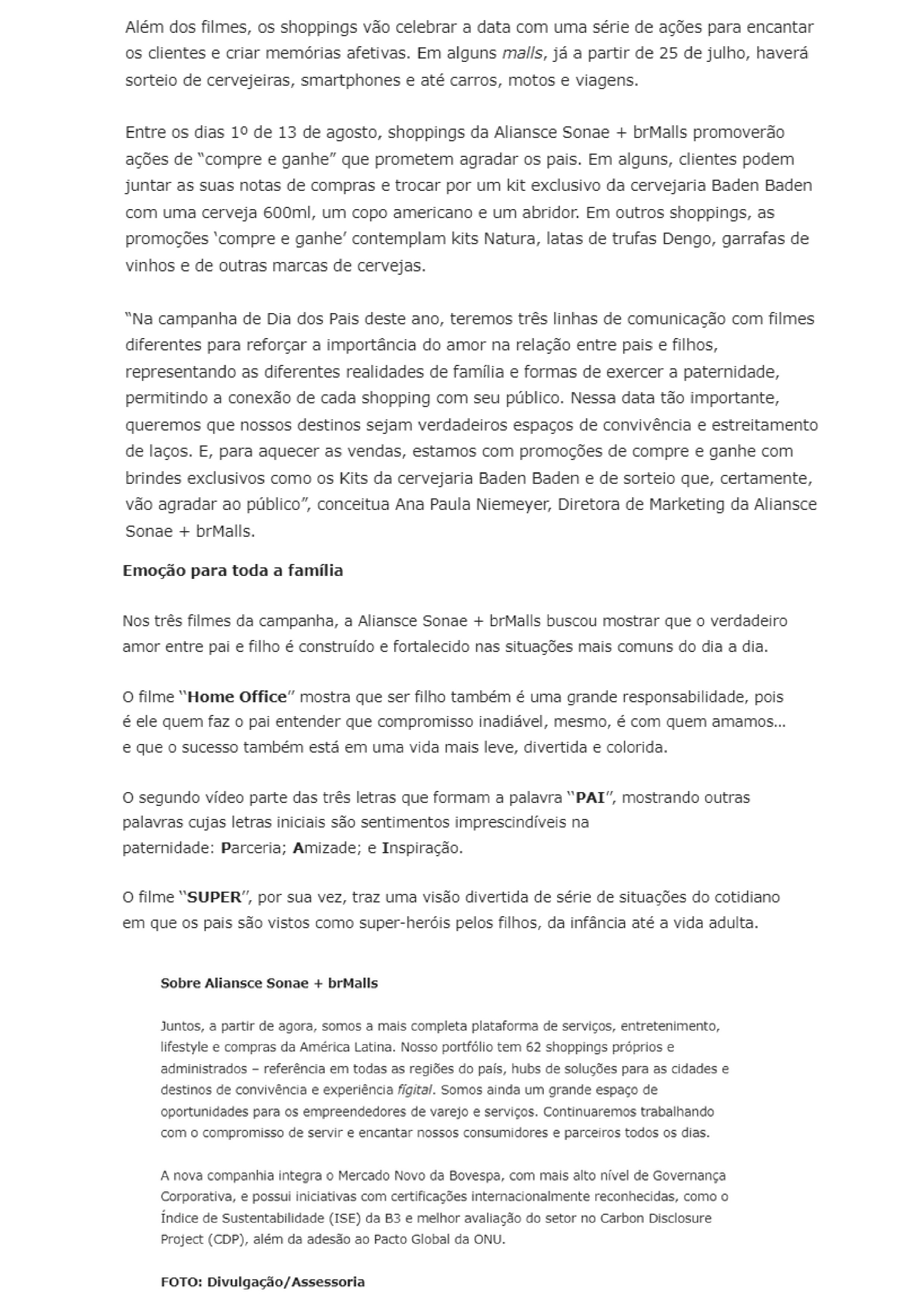 ONLINE - Dia dos Pais: Aliansce Sonae + brMalls lança primeira campanha unificada - 02.08