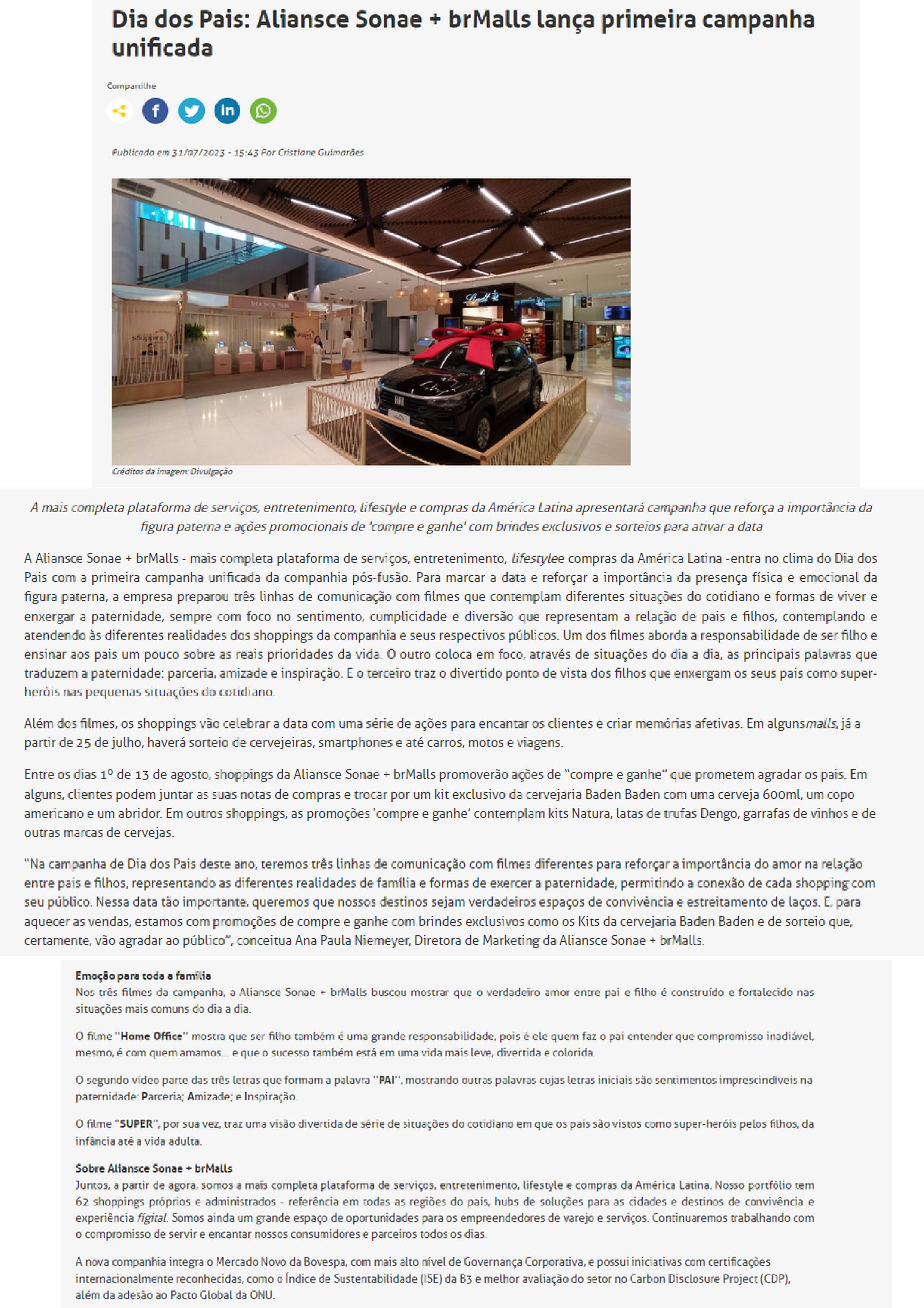 ONLINE - Dia dos Pais: Aliansce Sonae + brMalls lança primeira campanha unificada - 31.07