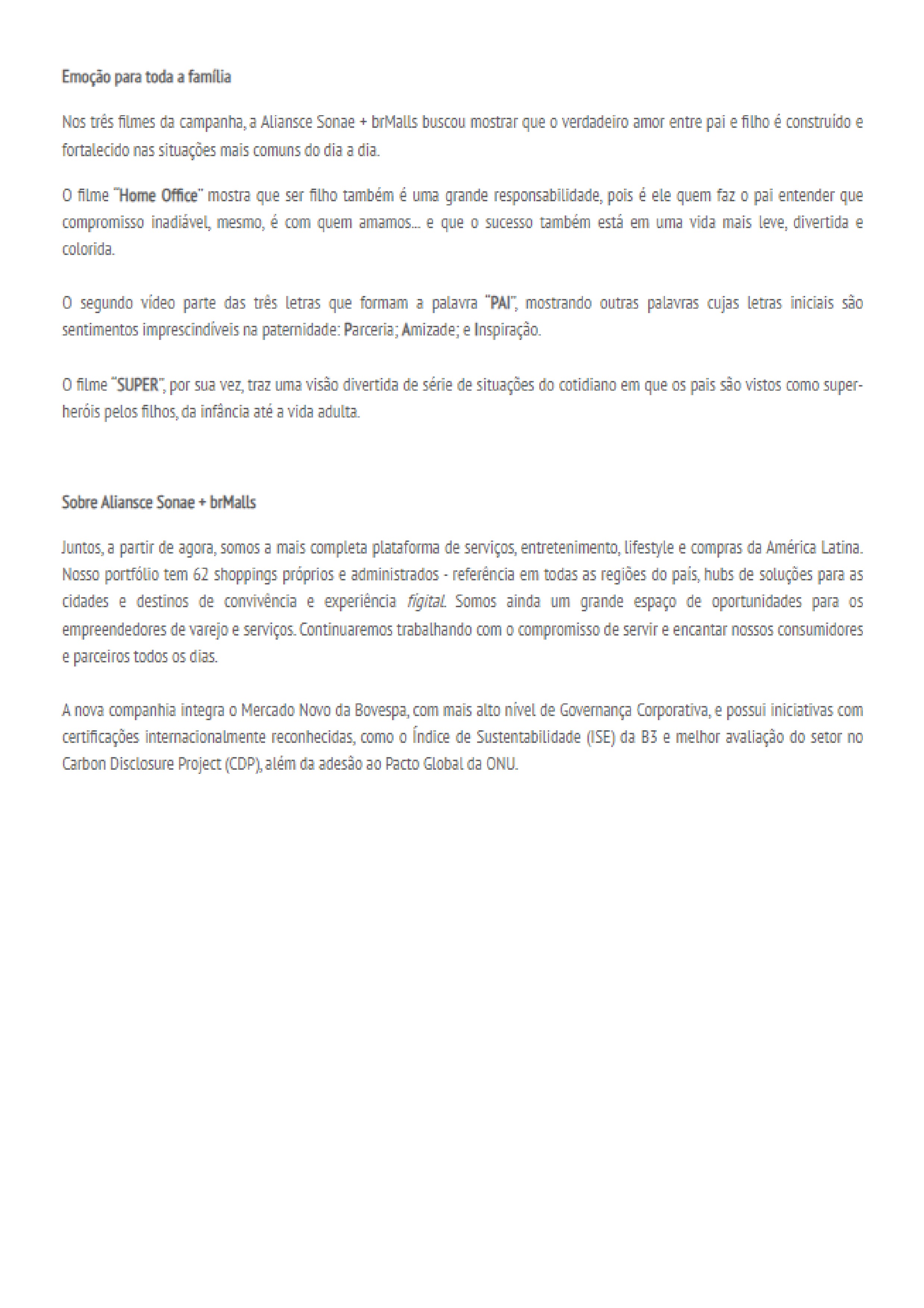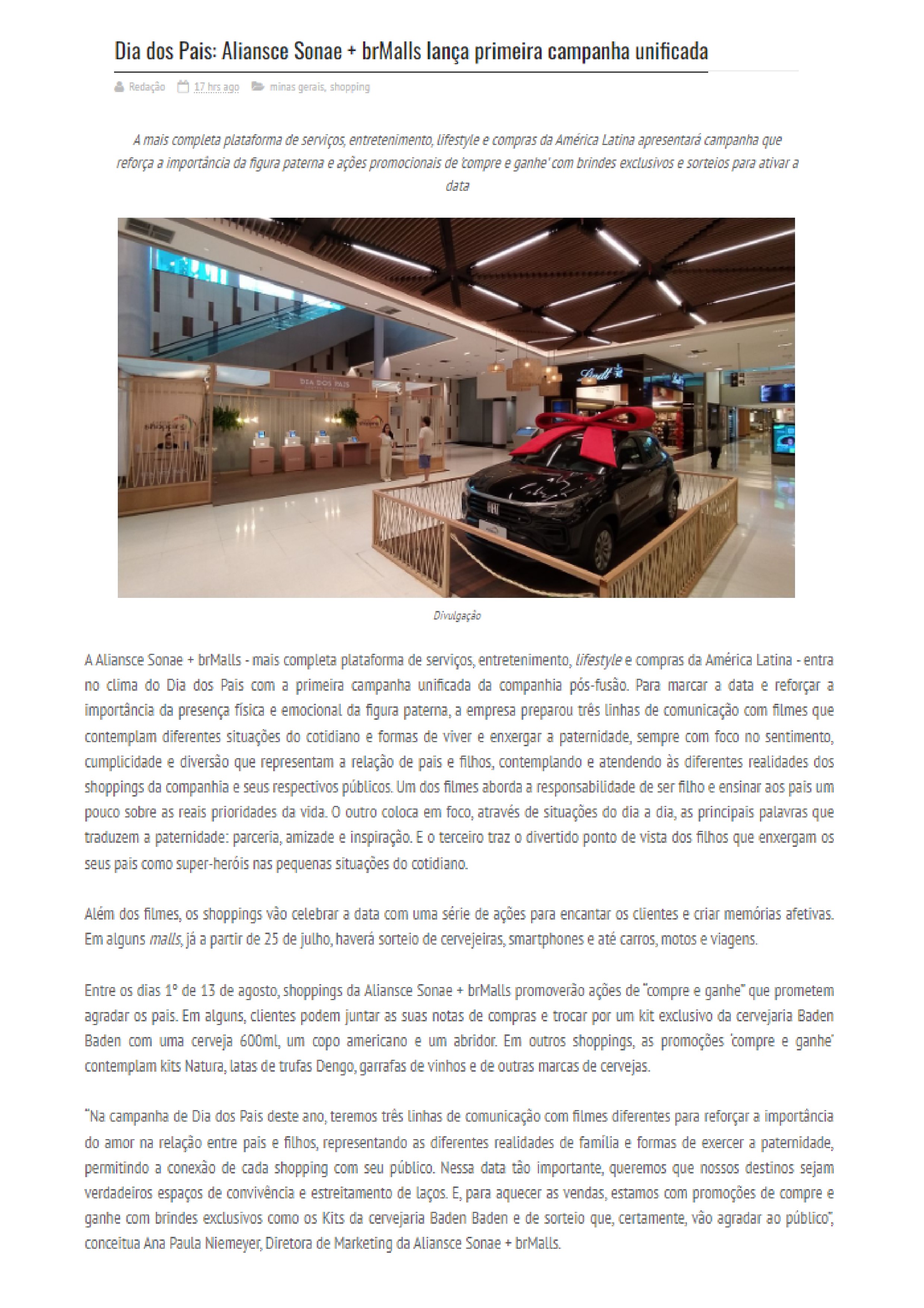 ONLINE - Dia dos Pais: Aliansce Sonae + brMalls lança primeira campanha unificada - 31.07