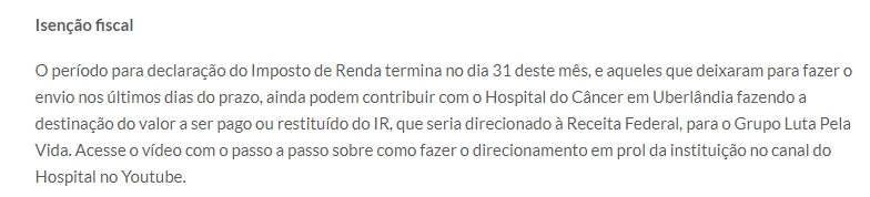 ONLINE - Doação IR Hospital do Câncer - 10.5