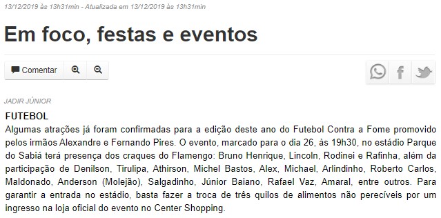 ONLINE - Em foco, festas e eventos - FUTEBOL (13/12)