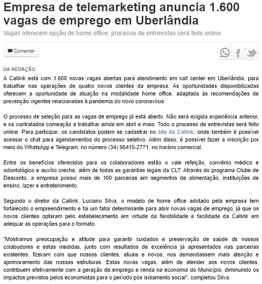 https://diariodeuberlandia.com.br/noticia/25030/empresa-de-telemarketing-anuncia-1-600-vagas-de-emprego-em-uberlandia