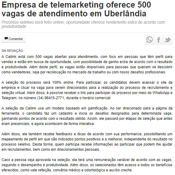 https://diariodeuberlandia.com.br/noticia/25430/empresa-de-telemarketing-oferece-500-vagas-de-atendimento-em-uberlandia