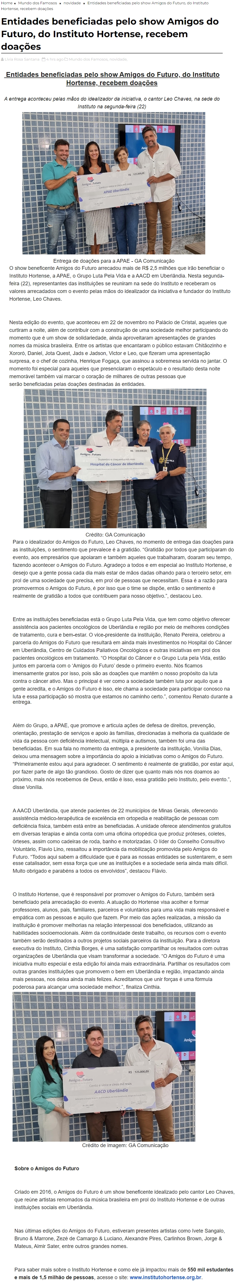 ONLINE-Entidades beneficiadas pelo show Amigos do Futuro, do Instituto Hortense, recebem doações-30.01