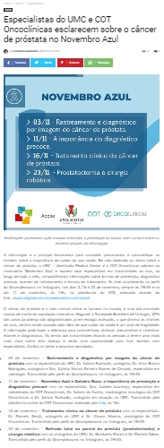 ONLINE - Especialistas do UMC e COT Oncoclínicas esclarecem sobre o câncer de próstata no Novembro Azul - 03/11