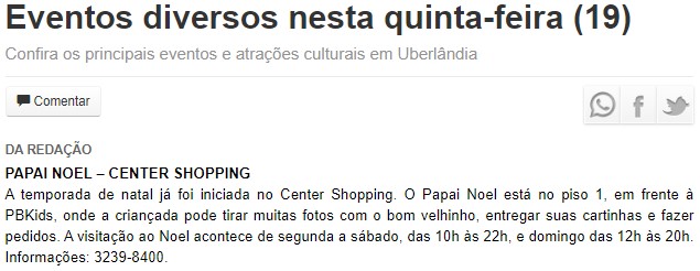 ONLINE - Eventos diversos nesta quinta-feira (19) - PAPAI NOEL (19/12)