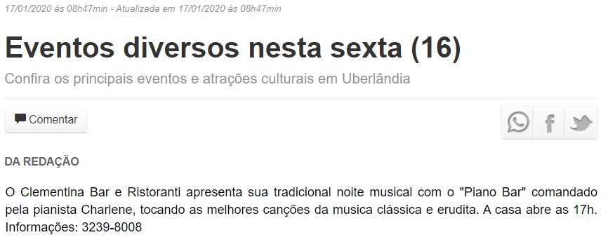 ONLINE - Eventos diversos nesta sexta (17) - 17/01