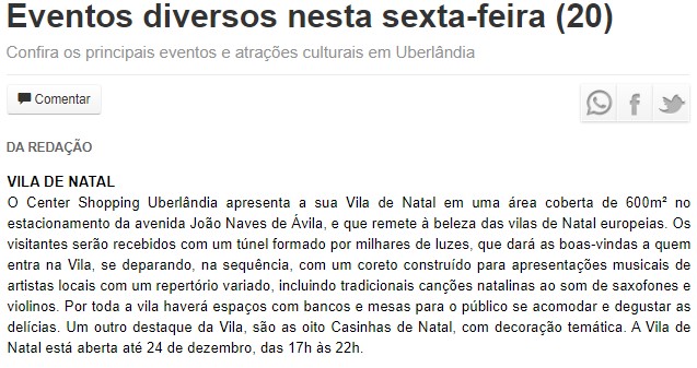 ONLINE - Eventos diversos nesta sexta-feira (20) - VILA DE NATAL (20/12)