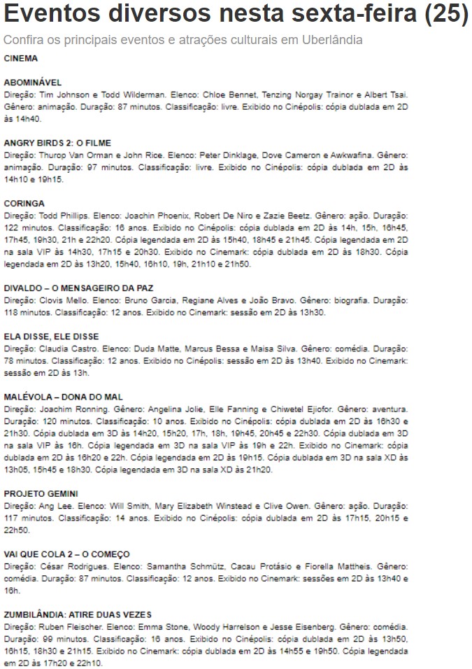 ONLINE - Eventos diversos nesta sexta-feira (25) - CINEMA (25/10)