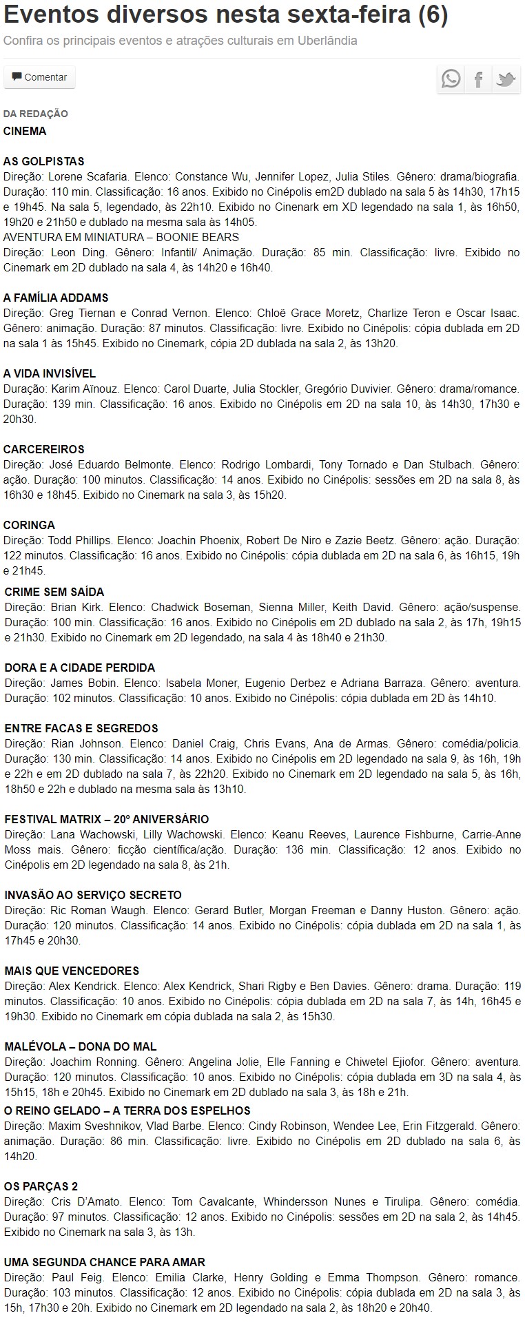 ONLINE - Eventos diversos nesta sexta-feira (6) - CINEMA (06/12)