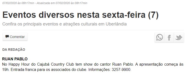ONLINE - Eventos diversos nesta sexta-feira (7) - MÚSICA - 07/02