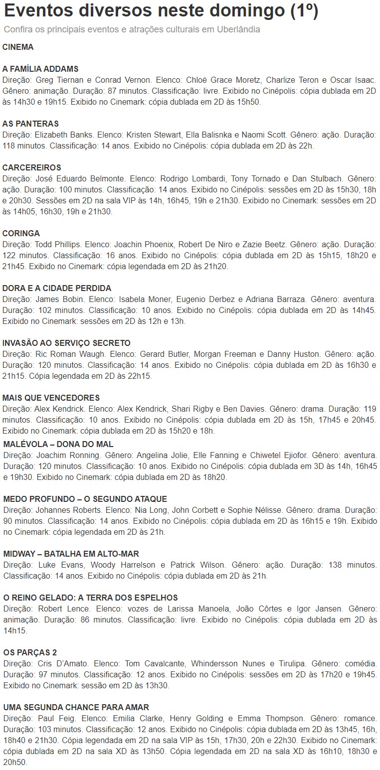 ONLINE - Eventos diversos neste domingo (1º) - CINEMA (01/12)