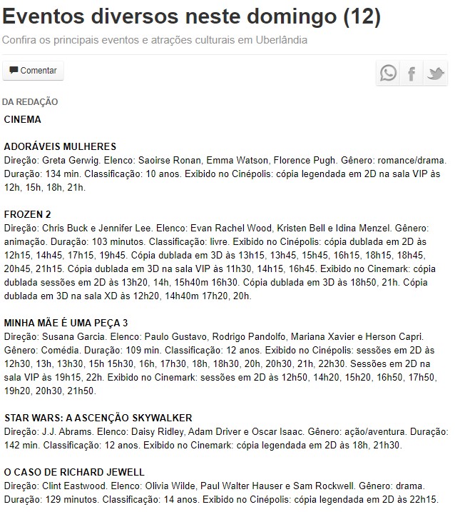 ONLINE - Eventos diversos neste domingo (12) - CINEMA - 12/01/2020