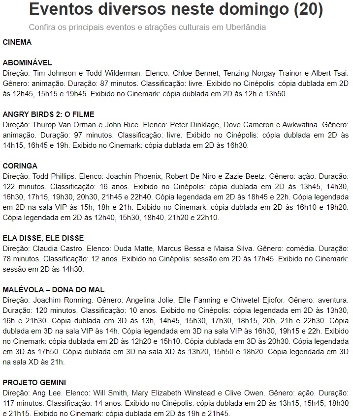 ONLINE - Eventos diversos neste domingo (20) - CINEMA (20/10)