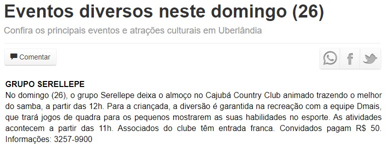 ONLINE - Eventos diversos neste domingo (26) - GRUPO SERELLEPE - 26/01