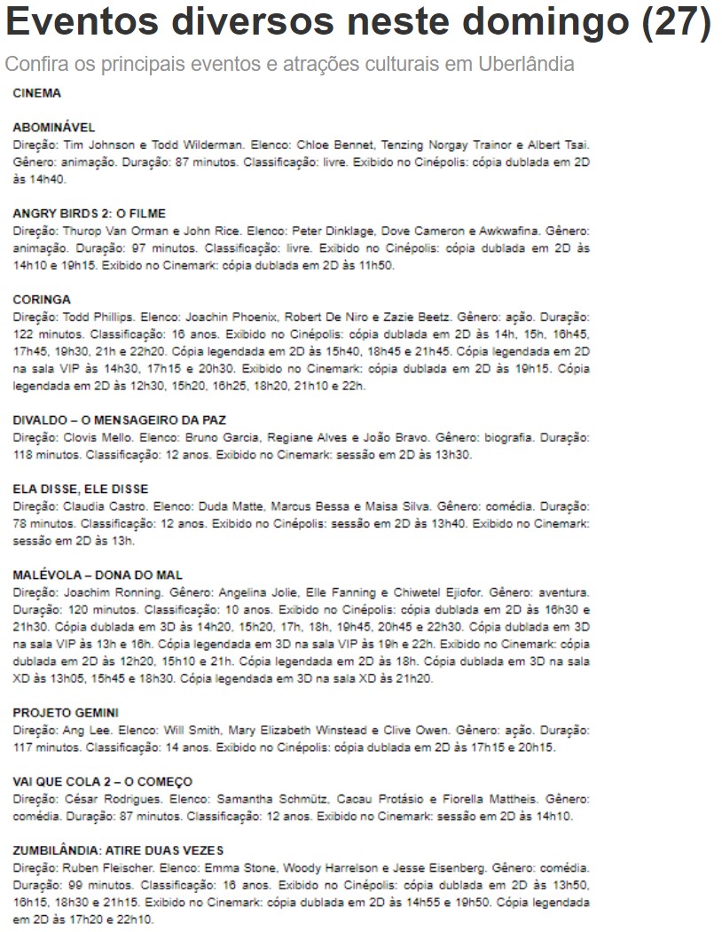 ONLINE - Eventos diversos neste domingo (27) - CINEMA (27/10)
