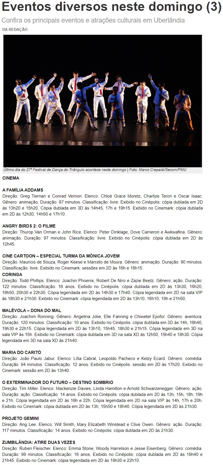 ONLINE - Eventos diversos neste domingo (3) - CINEMA (01/11)