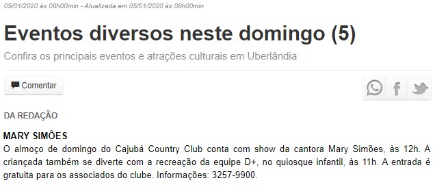 ONLINE - Eventos diversos neste domingo (5) - 05/01