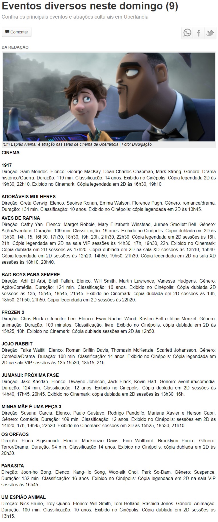 ONLINE - Eventos diversos neste domingo (9) - CINEMA - 09/02