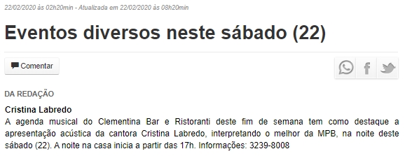 ONLINE - Eventos diversos neste sábado (22) - 22/02
