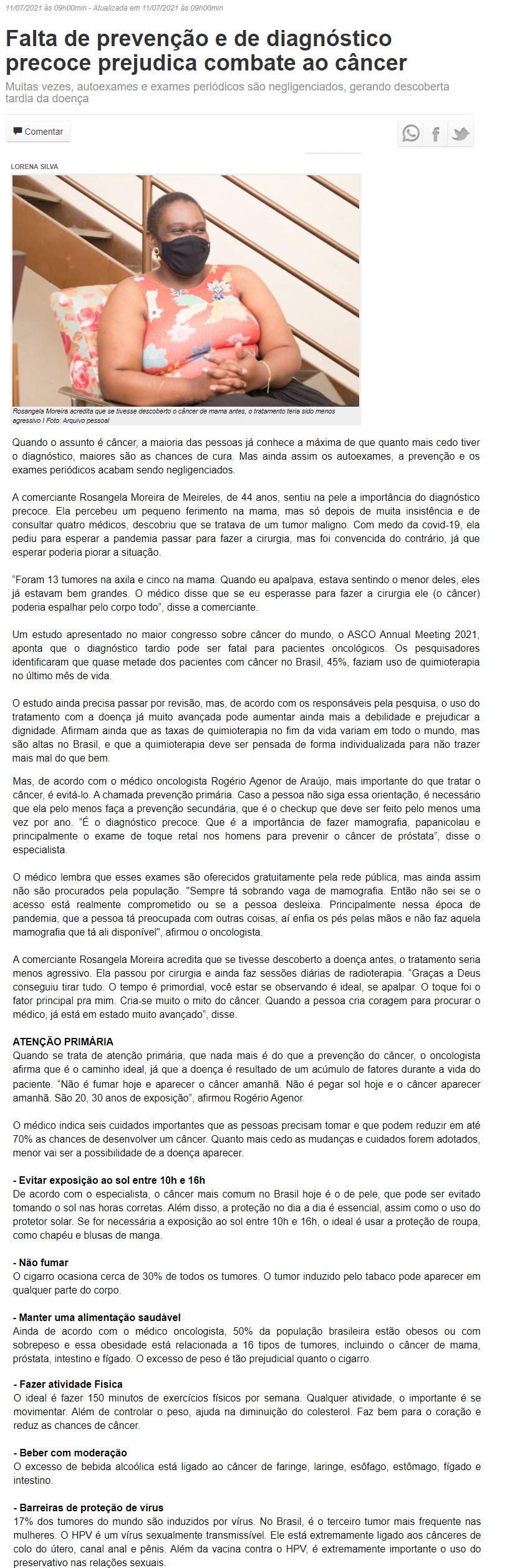 ONLINE - Falta de diagnóstico precoce prejudica combate ao câncer - 12.07