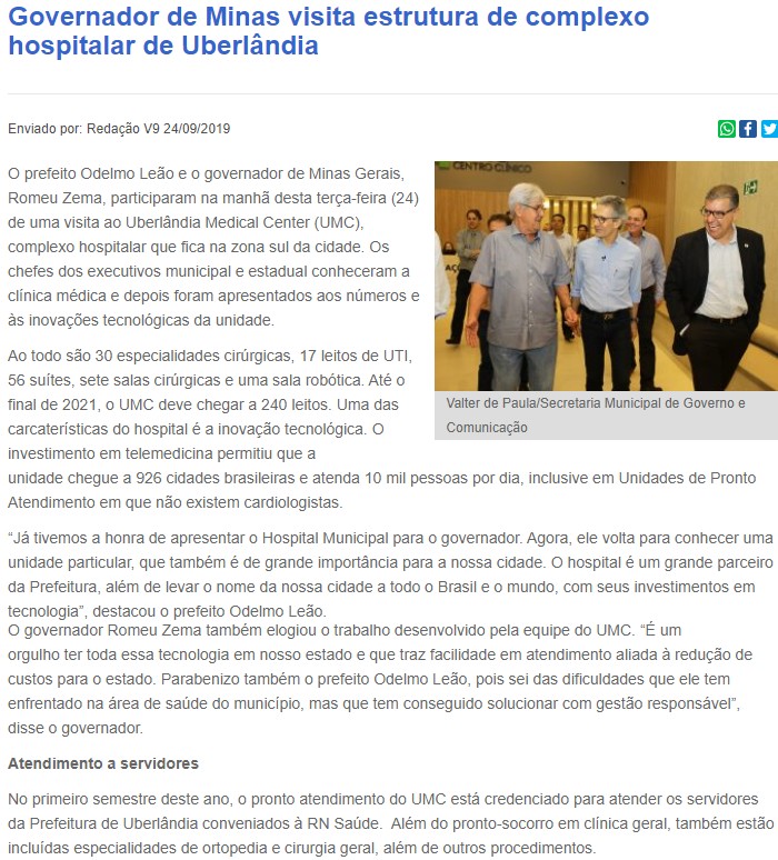 ONLINE - Governador de Minas visita estrutura de complexo hospitalar de Uberlāndia (24/09)