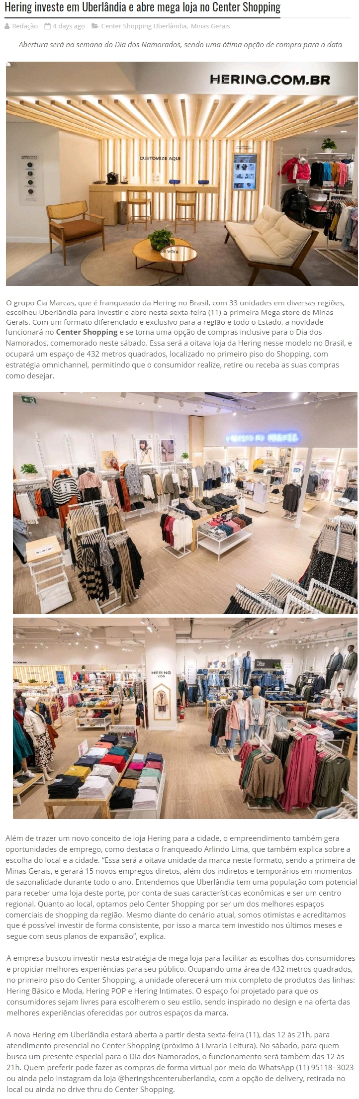 ONLINE - Hering investe em Uberlāndia e abre mega loja no Center Shopping- 07.06