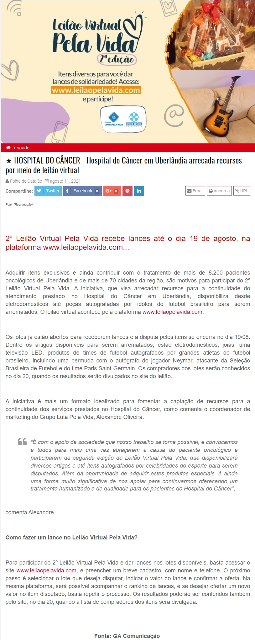 ONLINE-Hospital do Câncer em Uberlândia arrecada recursos por meio de leilão virtual-11.08