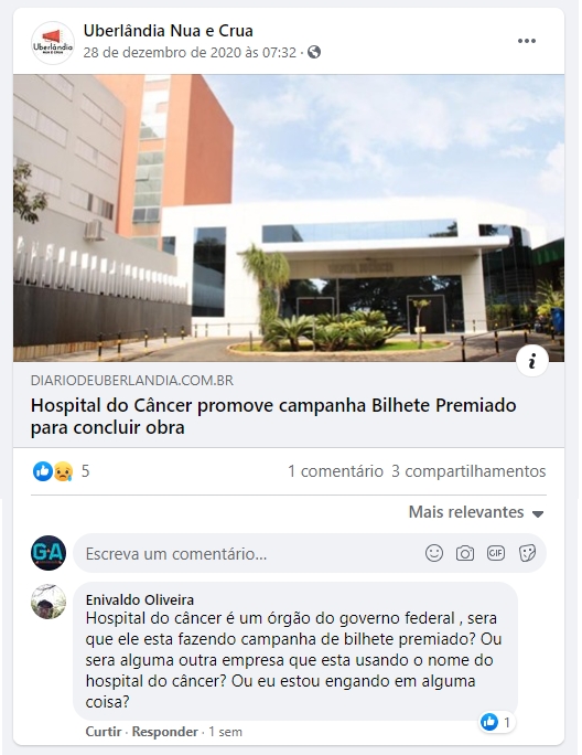 ONLINE - Hospital do Cāncer promove campanha Bilhete Premiado para concluir obra - 28/12