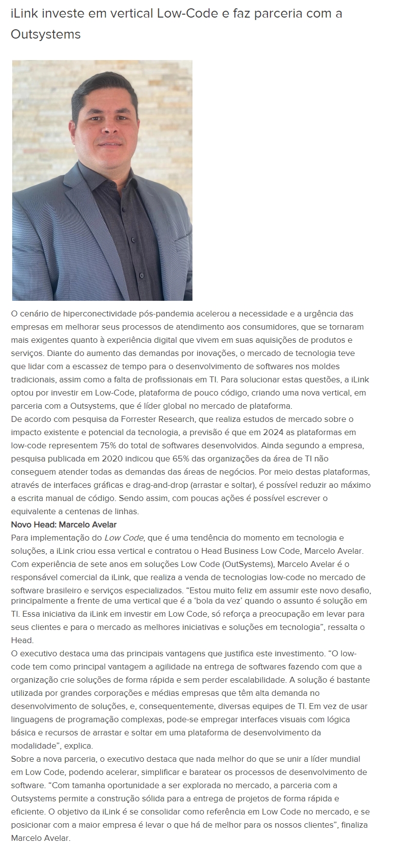https://www.hubceliocardoso.com.br/post/ilink-investe-em-vertical-low-code-e-faz-parceria-com-a-outsystems