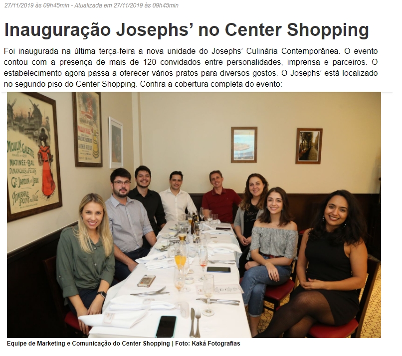 ONLINE - INAUGURAÇÃO JOSEPHS' NO CENTER SHOPPING (27/11)