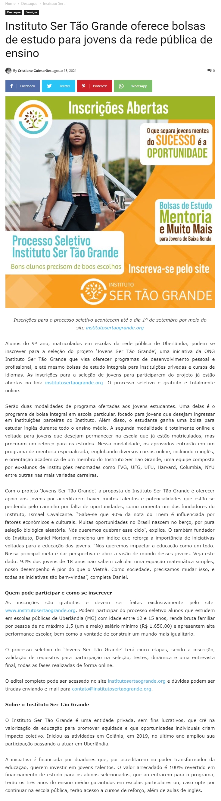 ONLINE-Instituto Ser Tão Grande oferece bolsas de estudo para jovens da rede pública de ensino-18.08