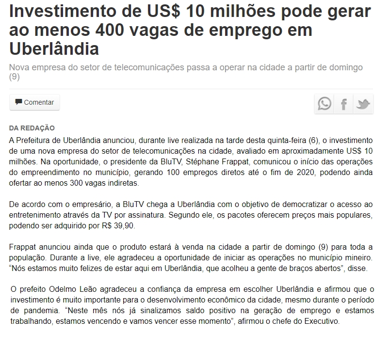 https://diariodeuberlandia.com.br/noticia/26094/investimento-de-us-10-milhoes-pode-gerar-ao-menos-400-vagas-de-emprego-em-uberlandia