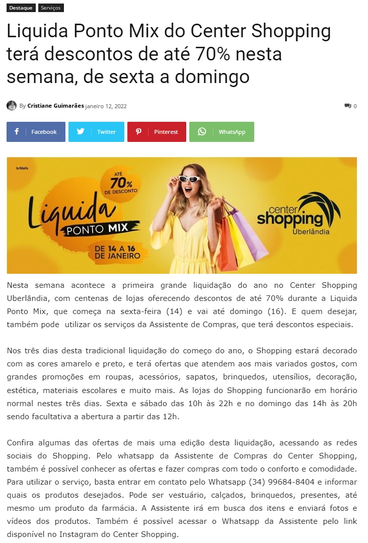ONLINE-Liquida Ponto Mix do Center Shopping terá descontos de até 70% nesta semana, de sexta a domingo-12.01